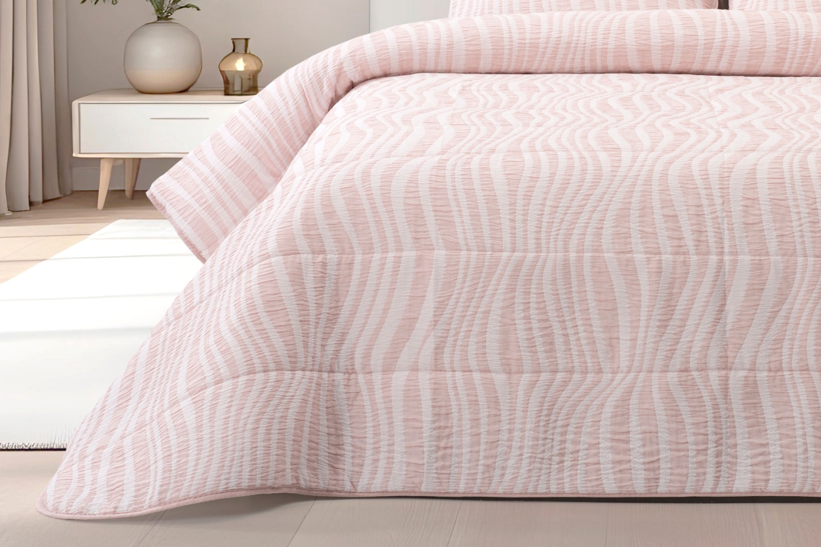 A Colcha BAMBU combina um design contemporâneo com um toque suave e aconchegante, ideal para transformar o quarto num espaço harmonioso e acolhedor. Confeccionada em tecido jacquard stonewash , apresenta um padrão subtil em relevo que acrescenta profundidade e requinte à decoração.