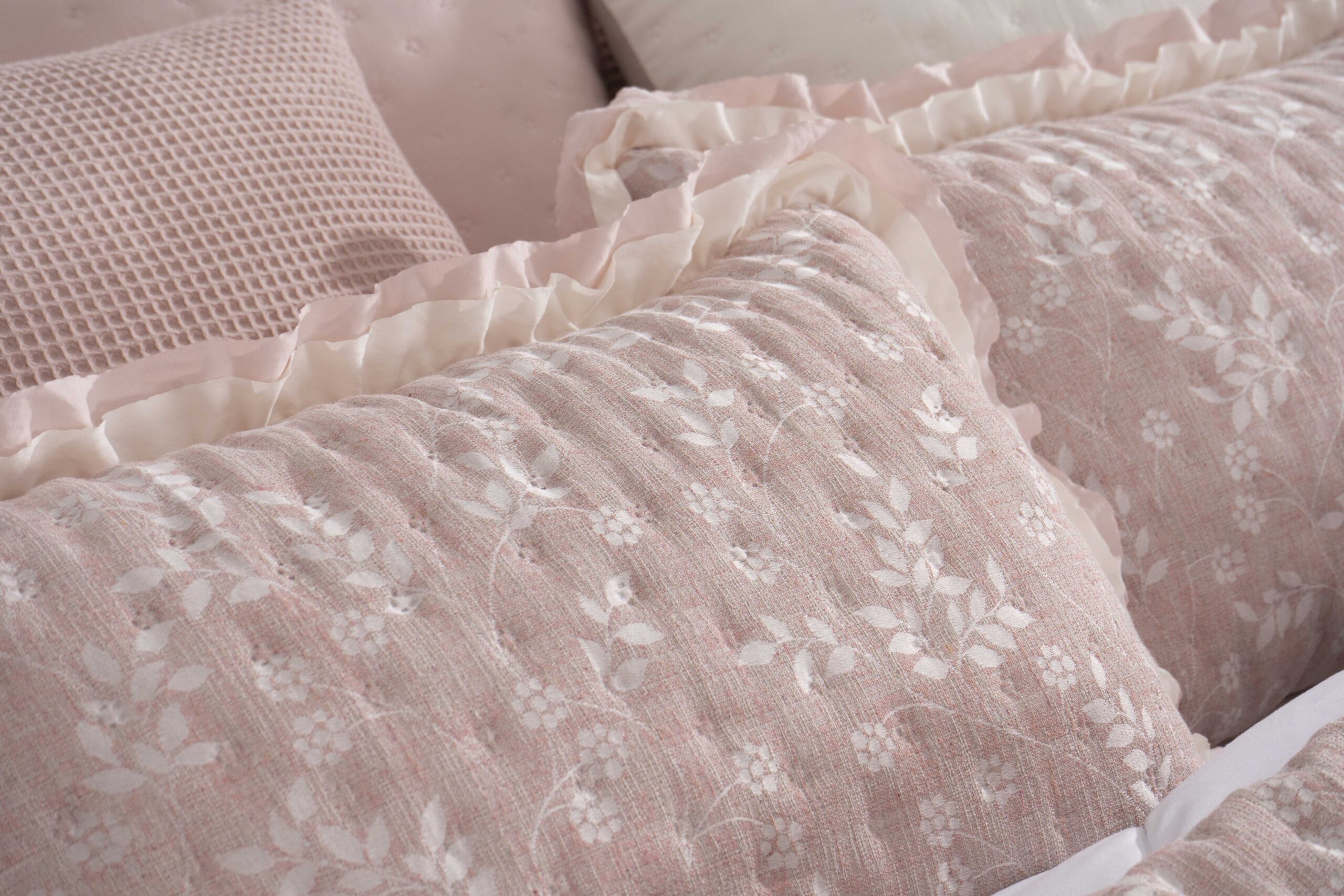 O seu folho duplo confere um acabamento romântico e exclusivo, tornando-a perfeita para criar um espaço aconchegante e sofisticado.
